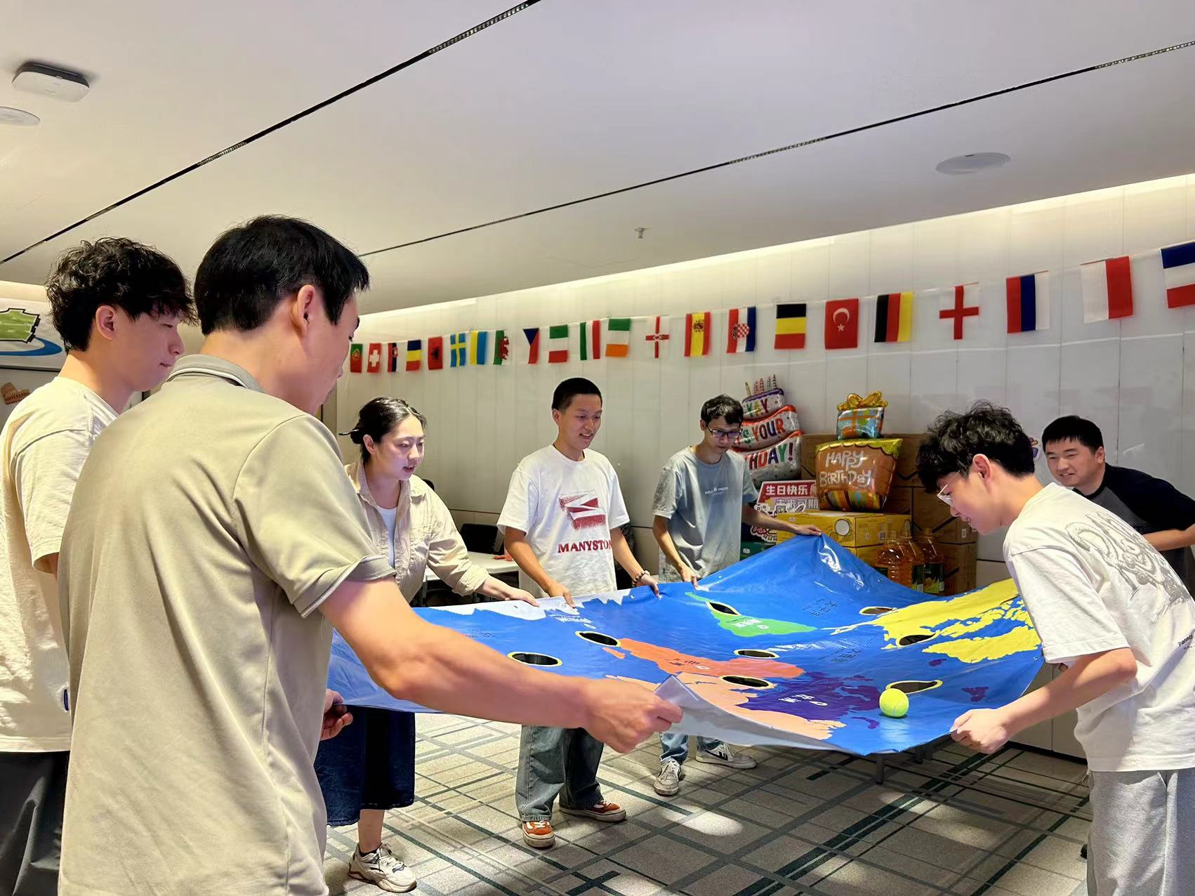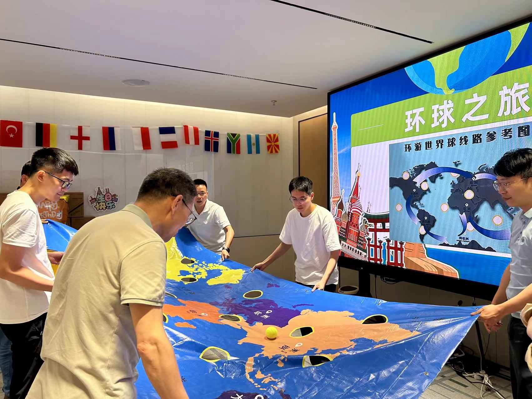 本次生日會的游戲環(huán)節(jié),為了貼近“環(huán)球”的主題,展現(xiàn)公司作為集團(tuán)國際貿(mào)易橋頭堡的風(fēng)采,壽星們分為“擁抱世界”、“放眼全球”兩個隊伍,開始了兩輪精彩對決!