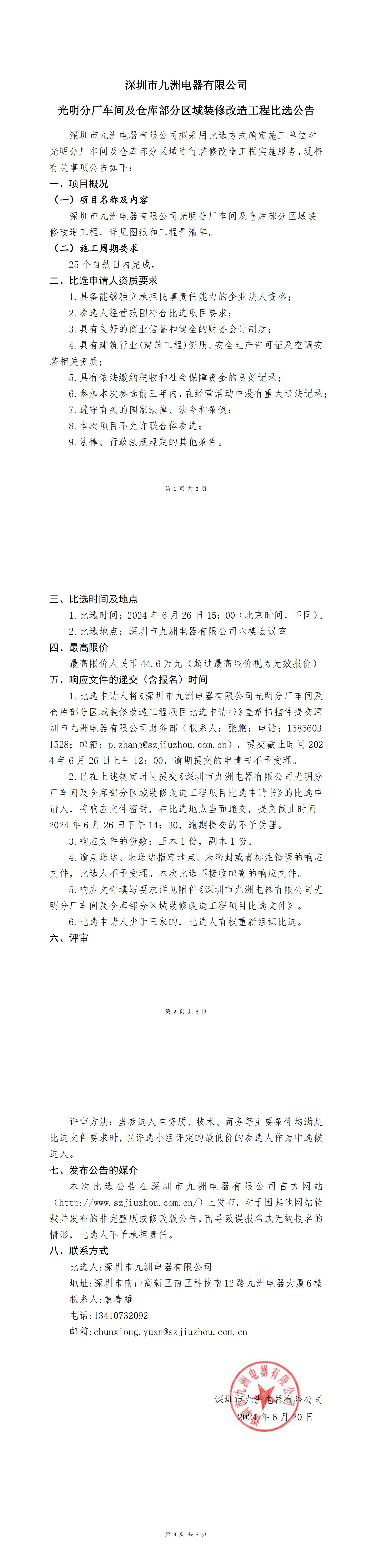 深圳市九洲電器有限公司光明分廠車間及倉庫部分區(qū)域裝修改造工程項(xiàng)目比選文件.pdf