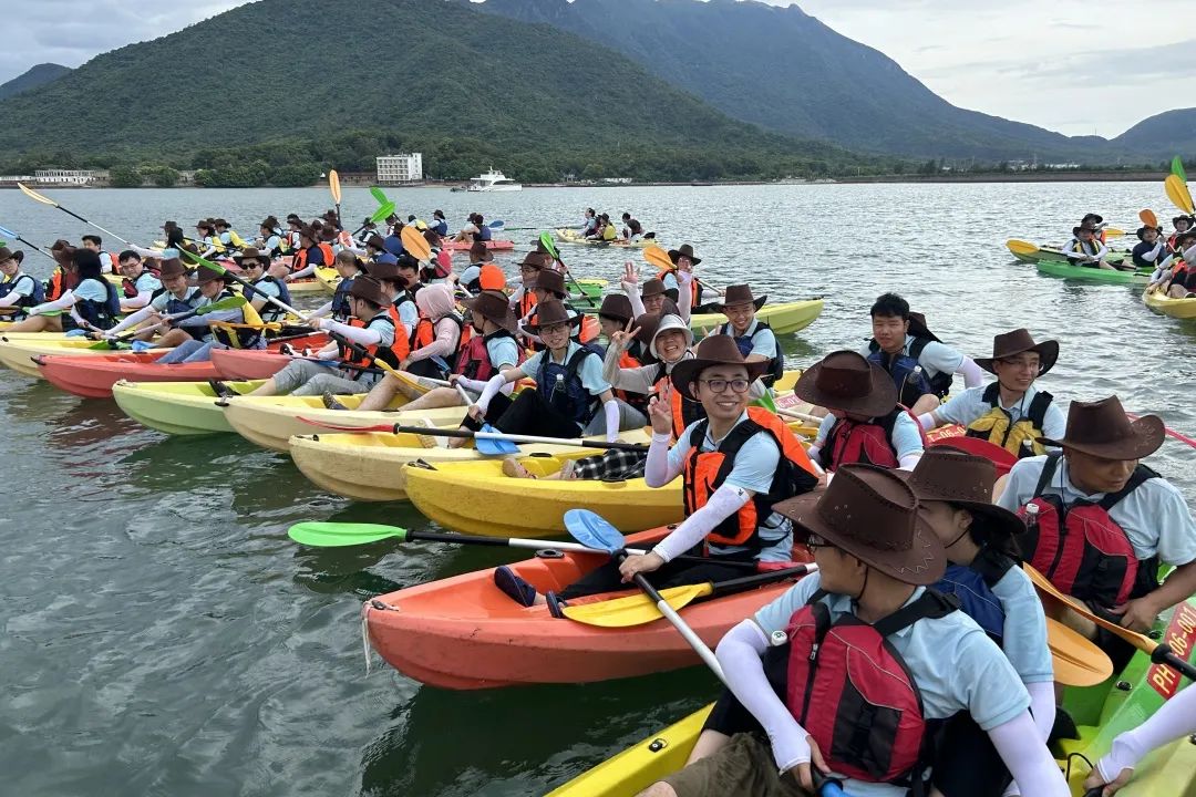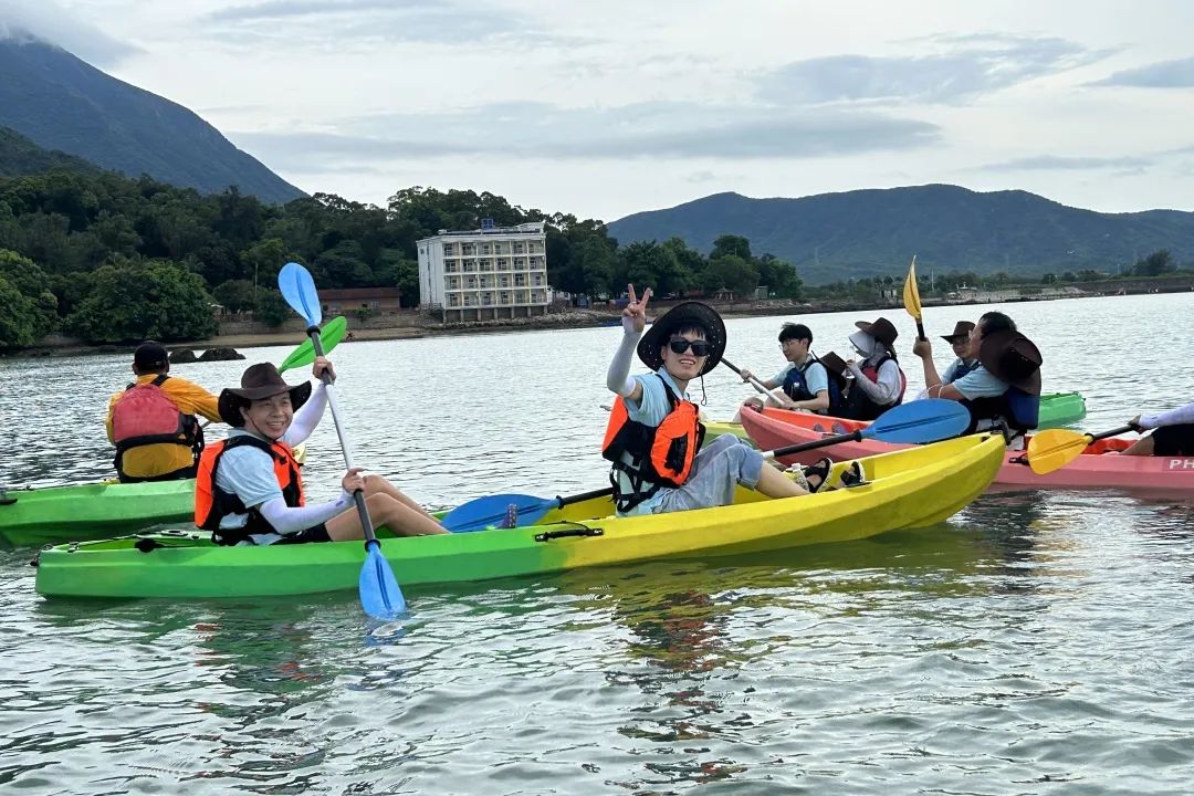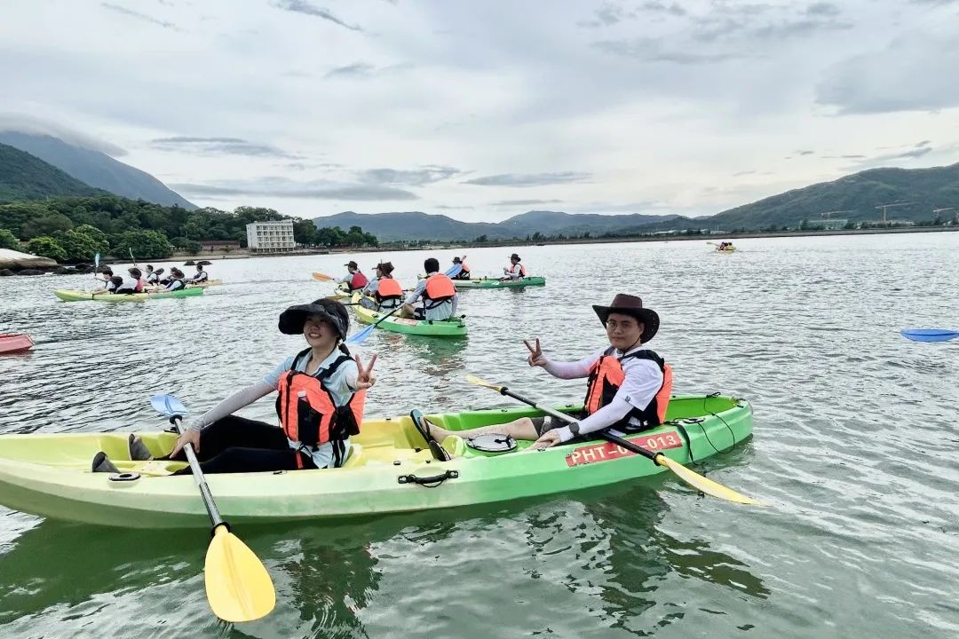 由專業(yè)的皮劃艇教練為大家做皮劃艇專業(yè)動作要領(lǐng)和安全注意事項的培訓(xùn),大家認真聆聽并迅速掌握要領(lǐng)。培訓(xùn)結(jié)束后,大家躍躍欲試,穿上救生衣,踏上皮劃艇,撐起長船槳,自由練習(xí),一陣陣歡聲笑語和整齊的“左、右、左、右...”打破了海面的平靜。