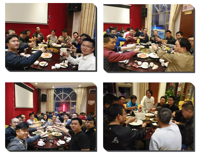 篝火晚會結(jié)束后,大團(tuán)隊移至基地附近的海鮮酒樓,開始了吃吃吃、喝喝喝、唱唱唱模式。這里有美食、美酒還有可愛的人,大家敞開心扉、暢所欲言的溝通和交流。期間,現(xiàn)場K歌大賽也是好聽到爆,大家在載歌載舞、推心置腹交流中結(jié)束了團(tuán)建活動的最后一個環(huán)節(jié)!