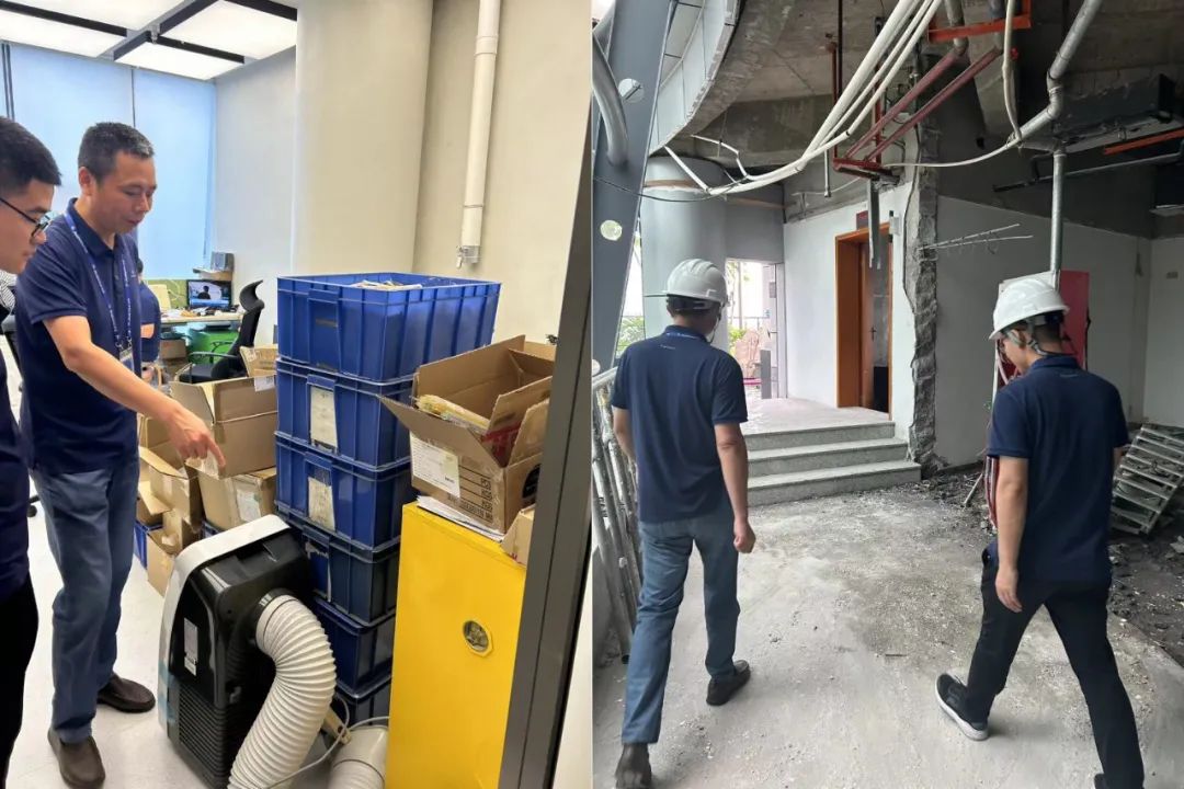 對公司新裝修辦公區(qū)、裝修及搬遷過程(辦公室、倉庫、實(shí)驗(yàn)室和設(shè)備房等及環(huán)境、飲用水的環(huán)保達(dá)標(biāo)情況監(jiān)督檢測,裝修過程的臨時(shí)用電、動火等特種作業(yè)及電工、空調(diào)等特殊作業(yè)資質(zhì)等)進(jìn)行安全檢查。