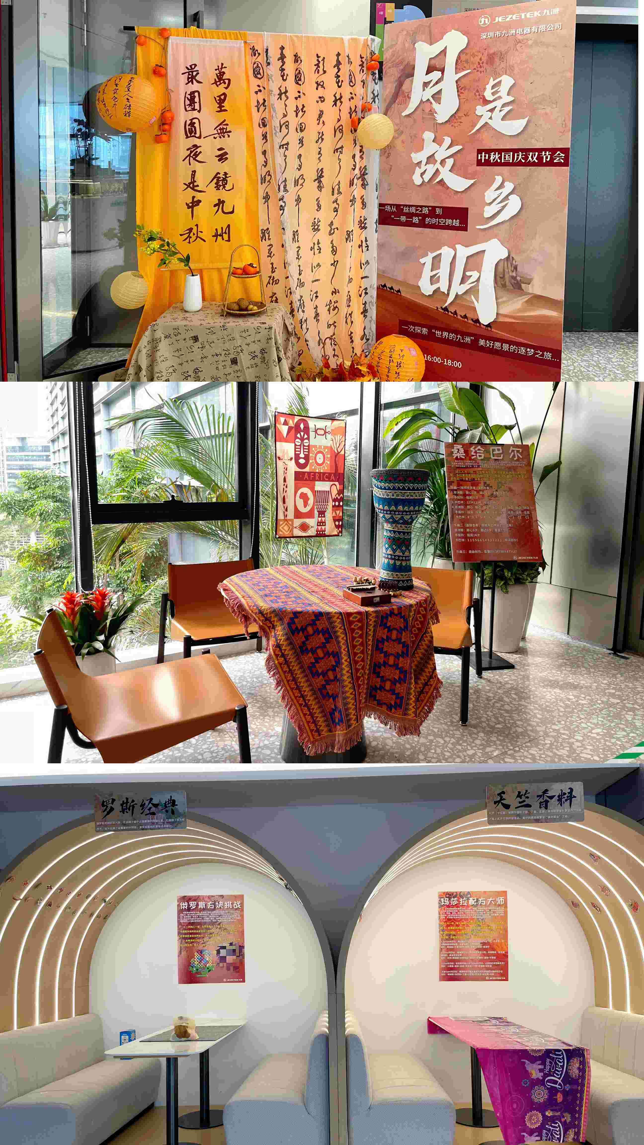 萬里無云鏡九洲,最團(tuán)圓夜是中秋,9月13日,深圳九洲電器組織開展以“月是故鄉(xiāng)明”為主題的中秋國(guó)慶雙節(jié)會(huì)。本次活動(dòng)融入了“絲綢之路”元素,在感受節(jié)日氛圍與九洲文化的同時(shí),弘揚(yáng)了合作共贏、開放包容的絲路精神,進(jìn)一步拓展了大家的視野,增進(jìn)了對(duì)跨文化的認(rèn)知。