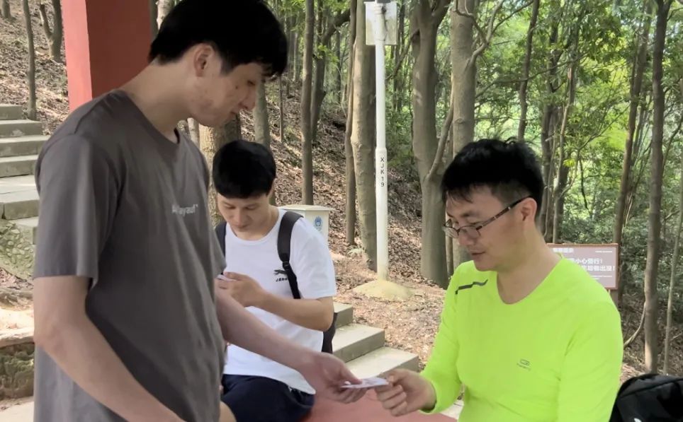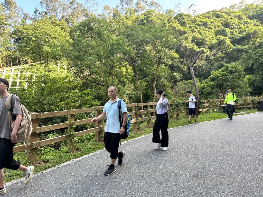 當(dāng)日上午,全員集合完畢,大家伴著明媚的陽光,互相扶持,互相幫助,邊走邊感受綠色生態(tài)氣息,贊嘆革命先輩奮斗的不易,途徑風(fēng)門坳、大陽臺山頂、秋菊亭,歷時7小時,最終到達(dá)“勝利大營救”主題紀(jì)念碑前。