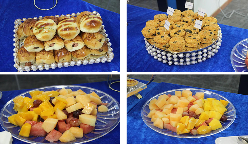 現(xiàn)場不僅有精彩的干貨培訓(xùn)課程,更有美味佳肴讓人垂涎欲滴,深圳九洲為大家提供美味茶歇,課間休息時間,學員們前往茶歇區(qū),分享美食,喜笑顏開。