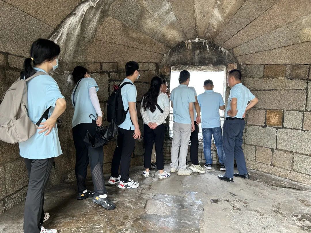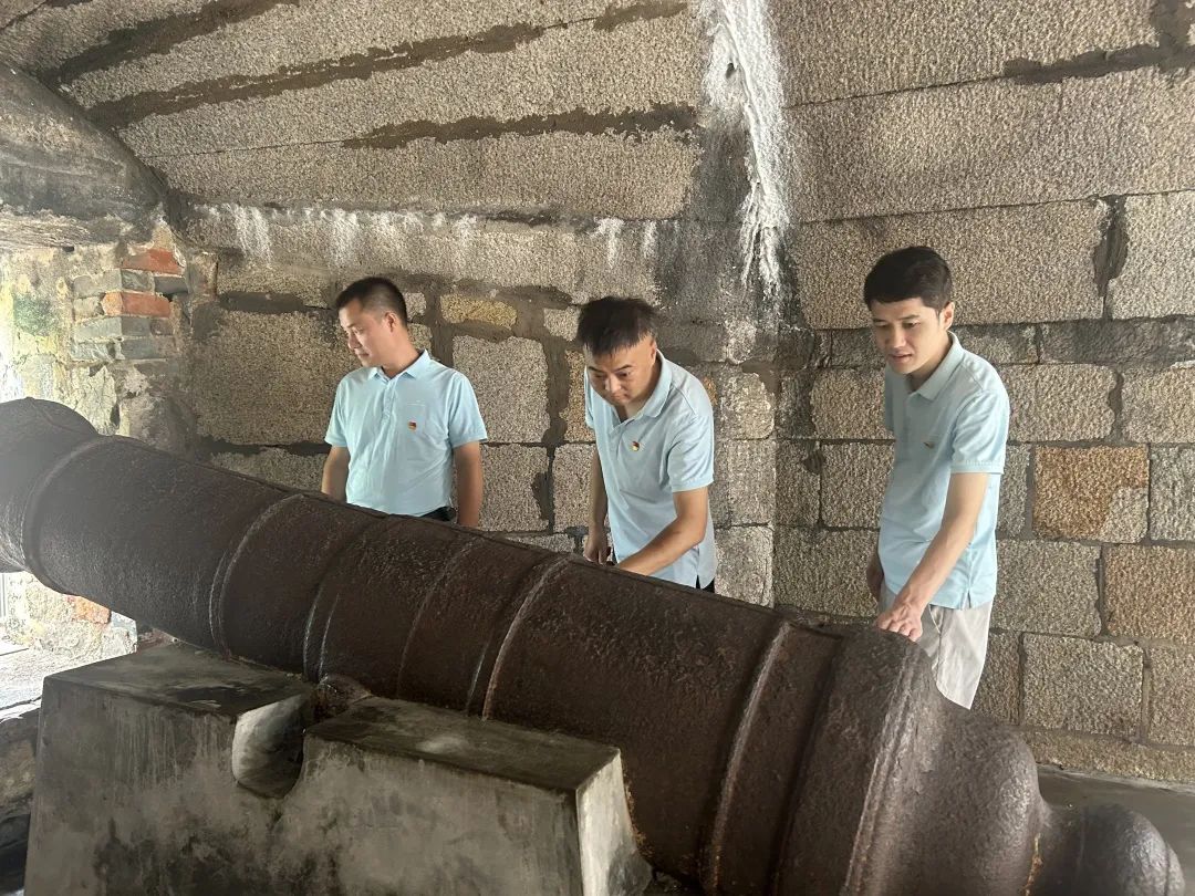 “遙觀碧海出滄灣,滾滾波流過(guò)峽關(guān)”,平靜的海面曾經(jīng)炮火紛飛,威遠(yuǎn)炮臺(tái)歷盡風(fēng)雨洗禮,黨員們用手輕撫著他,感受著歷史的溫度,是那么蒼涼、悲壯,仿佛愛國(guó)英雄關(guān)天培誓死守護(hù)炮臺(tái)、守護(hù)國(guó)土的一幕重現(xiàn)。