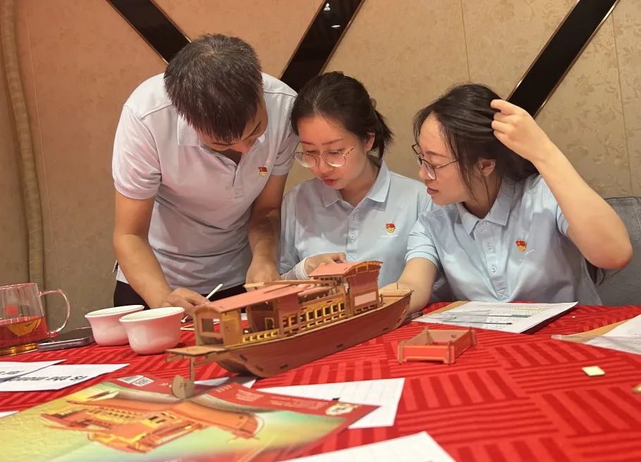 下午,黨員們開始了“重返1921”紅色劇本研讀活動(dòng),旨在注入黨史學(xué)習(xí)年輕態(tài),解鎖主題黨日新模式,主要分為“星星之火-前往上?!薄ⅰ捌咴铝骰?望志路106號(hào)”、“八月驕陽(yáng)-嘉興南湖紅船”等內(nèi)容,通過(guò)觸發(fā)任務(wù)、全員解密、紅船制作、劇本演繹等沉浸式體驗(yàn),帶領(lǐng)黨員們穿越歷史時(shí)空,走進(jìn)崢嶸歲月,感悟黨史,感悟紅色文化,致敬革命先輩,汲取奮進(jìn)力量。