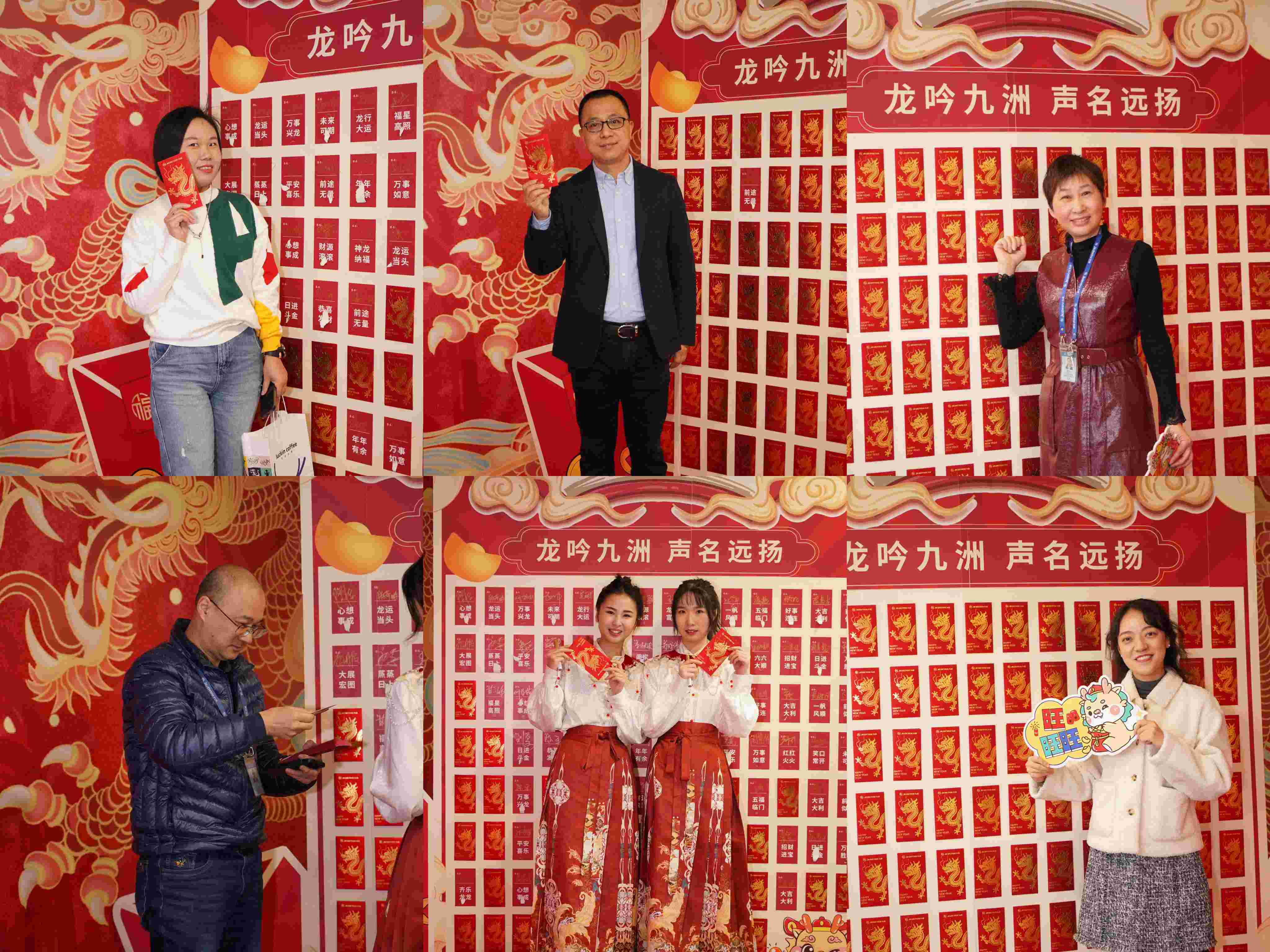 除了伴手禮外,公司還設(shè)置了紅包簽到墻,紅包內(nèi)有不同的“小驚喜”,抽取紅包后,龍年相關(guān)祝福語(yǔ)映入眼簾,大家紛紛簽名寄語(yǔ),祝愿公司蒸蒸日上,家庭幸福安康!